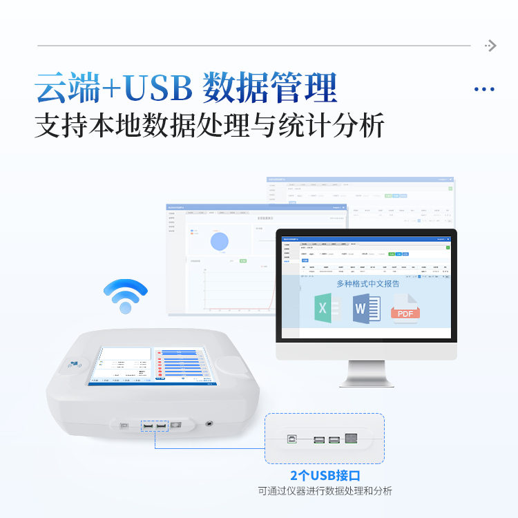 7、仪器配备2个USB接口,可通过仪器本身进行数据处理和统计分析。